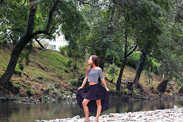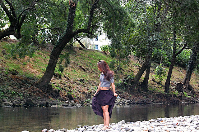 Voltando ao tema Look de um dia de Verão usei um crop top manga 3/4 uma saia preta mais curta à frente que já tenho à alguns anos e mesmo assim adoro-a usar com umas sandálias rasteiras bem confortáveis