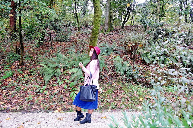 Este look foi fotografado no norte de Portugal bem ao meu gosto, a natureza o contraste das cores de Outono com as cores que visto.