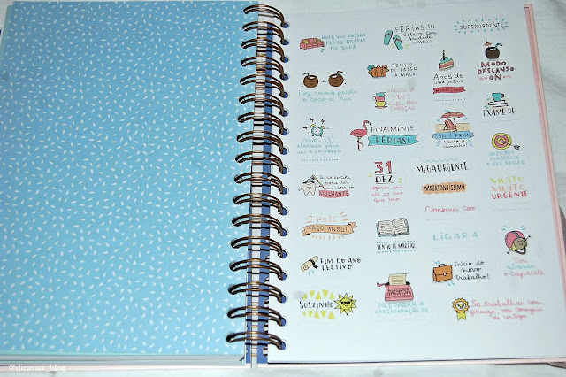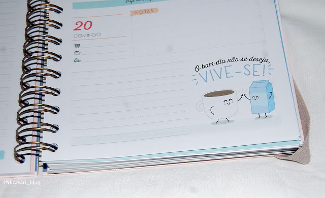 Esta agenda é do género escolar para ano lectivo, mas como eu até gosto de itens girly irei usar de forma a que a gestão de tempo seja eficaz. A que tenho de 2016 é linda, tem cores que transmitem alegria só de olhar para a capa, sendo a sua vista semanal, o que me cansou e muitas vezes havia dias que tinha muita coisa para fazer anotava e já não tinha espaço.
